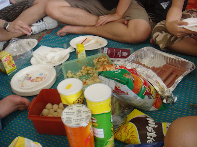 The humble and easy food prepared by them 🙂We had more food like crab claws, curry puffs and kuey kueys.Stupid Eric and his 50sticks of hotdogs for the 9 of us.In the end we had to throw away the remaining ones which is about 20sticks.